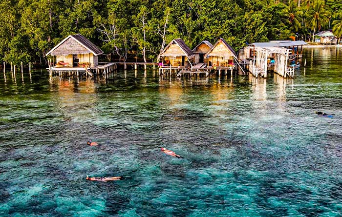 Birds of Paradise inhabit Gam’s jungles and can be seen displaying at dawn and dusk, and long walks along coastal paths are available. Be sure to continue eastward past Sawinggrai to the mangrove boardwalk near Mandarin Homestay.