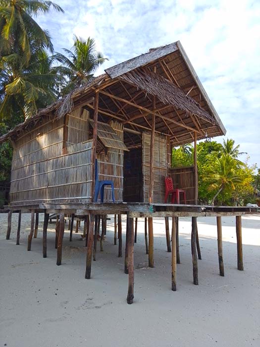 Guests share a two-room bathroom building. A western style toilet and bucket bathing are provided. Note: As far as we know, there is no fresh water supply on Ransiwor. Which means that, if the bathing water supplied is fresh, then it’s been hauled over from Yenbuba for you. Use sparingly!
