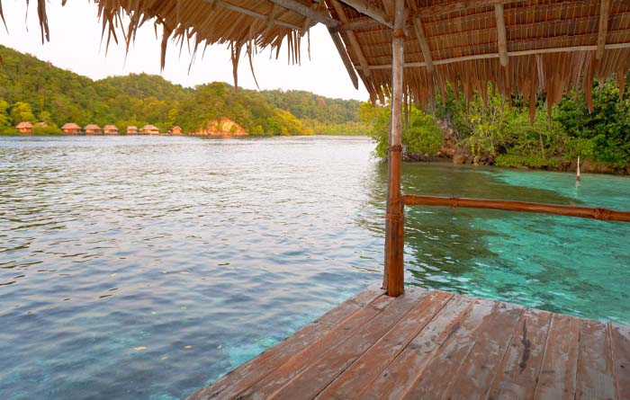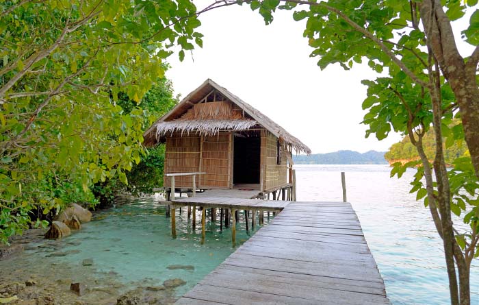 Citrus Homestay is a single, private, over-water bungalow, occupying a sheltered cove on Pulau Yanggelo’s northern shore.
