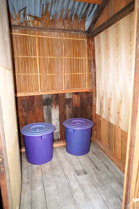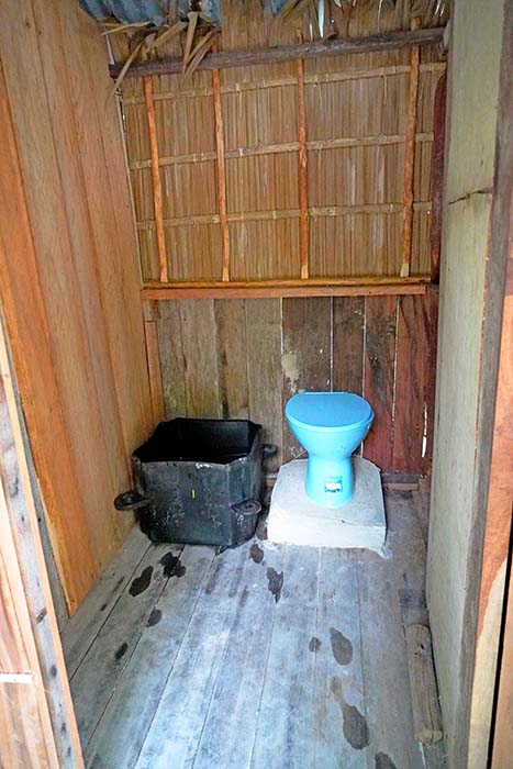 A separate bathroom building provides a western style toilet, and dip mandi (bucket) bathing.