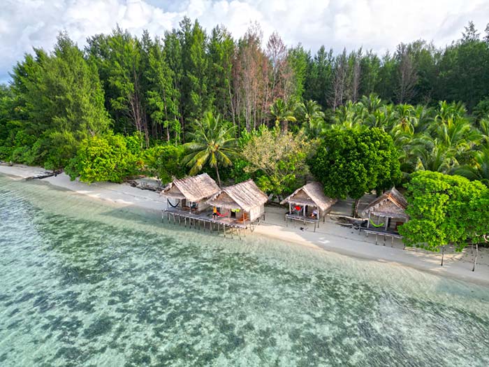 Coco Huts Homestay is at Yef Kabu, a small sand cay in the heart of West Waigeo’s Meos Manggara islands.