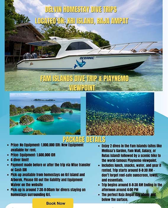 Delvin Homestay Raja Ampat day tours and snorkelling