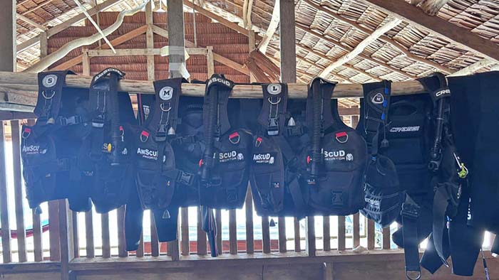 Delvin has an on-site dive center. Dives cost IDR 600,000 per person per dive, including guide and equipment hire costs. If you have all your own gear, dives are IDR 500,000 per person per dive.