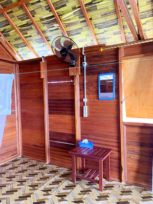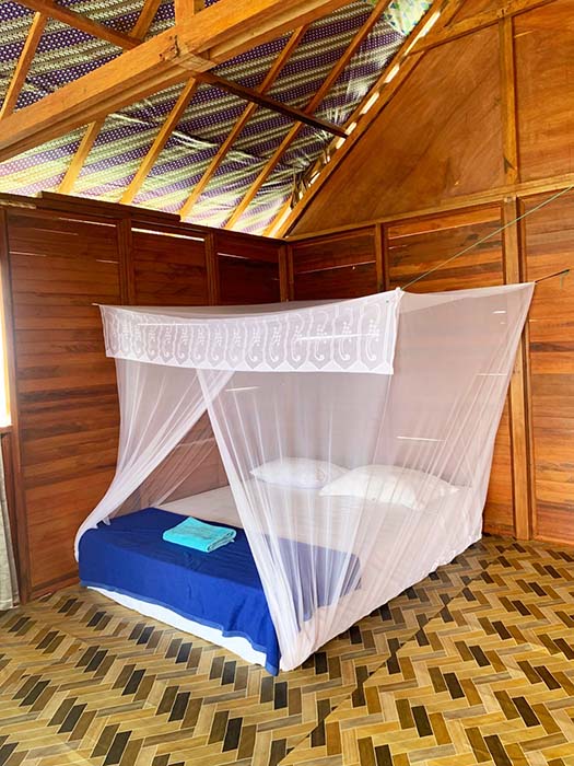 Six over water bungalows are available. The bungalows have locking doors, glass windows and raised beds. Sheets, pillows, bolsters and mosquito nets are provided.