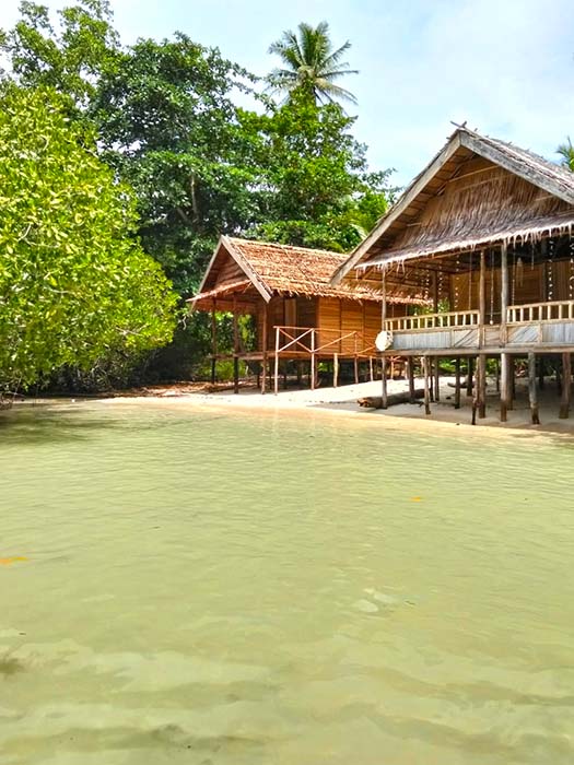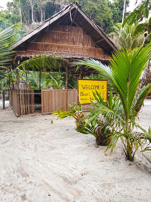 Mikael Homestay offers a two-room family bungalow, and a private bungalow in a secluded cove on the northern Waigeo island of Boni.