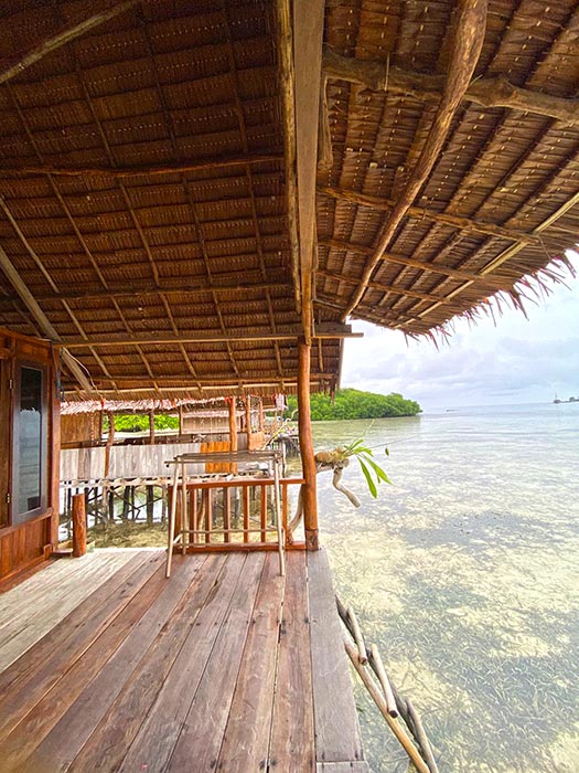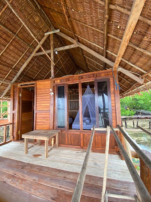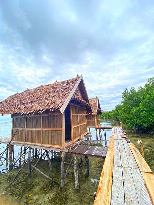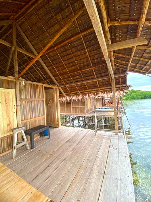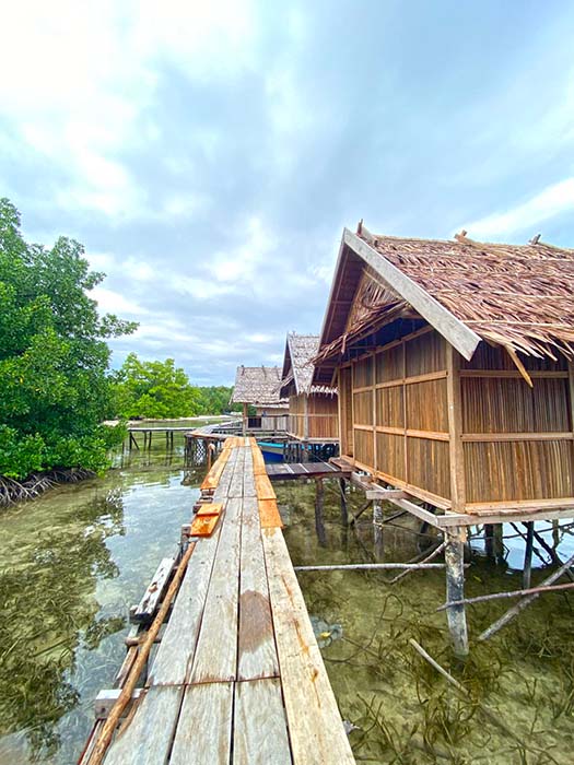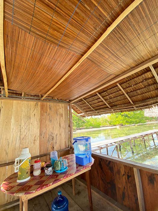 Meals are served in Senja Homestay’s over-water dining room. Free drinking water and tea and coffee making supplies are always available for guests there.
