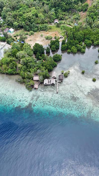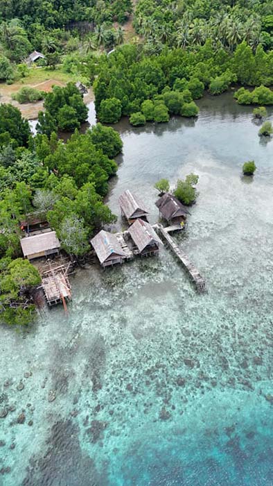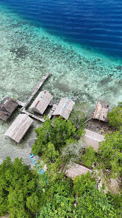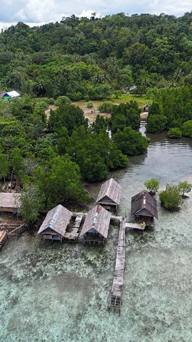 Connected to Kapisawar by a stony path (sturdy footwear recommended) and rustic stepladder, the homestay is surrounded by a profusion of naturally occurring orchids and shaded by overhanging trees. The flowering orchids (in December) and papaya trees provide a unique ambience and the homestay is a convenient departure point for visits to the attractions of Manta Sandy, Arborek and Piaynemo.