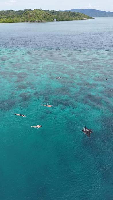The shallow and rich homestay house reef extends from the point to a deep water dropoff, with shallow mangrove fringed bays with seagrass and coral to either side. In addition to the excellent house reef, Tapor Aikos offers a range of snorkelling trips to other destinations. See the above linked price list for details.