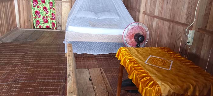 Private bungalows have raised beds, while the family bungalow rooms have mattresses on the floor. Sheets, pillows, bolsters and mosquito nets are supplied in all rooms.