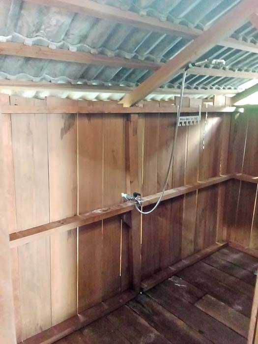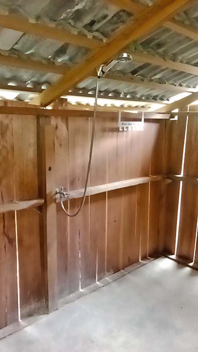 All rooms have a shower, so that guests can rinse off at any time without having to walk to the shared bathroom facilities. Please don’t use soaps or shampoos in the room showers. Room showers drain directly into the ocean, and are intended to rinse after swimming or to cool down only.